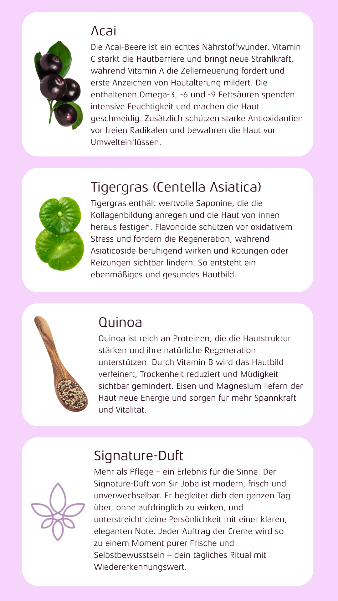 Pflegt intensiv, stärkt die Hautbarriere und unterstützt die natürliche Regeneration – Tag für Tag. Die leichte, schnell einziehende Textur mit Sheabutter versorgt die Haut mit langanhaltender Feuchtigkeit und hinterlässt ein geschmeidiges, gesundes Hautgefühl. Abgerundet durch den dezenten Signature-Duft von Sir Joba – sinnlich, markant und unverwechselbar.